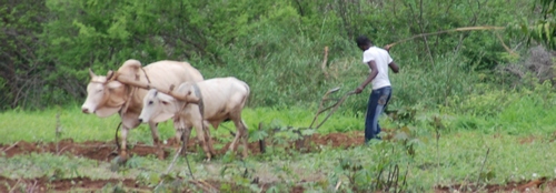 to okser. Du ser at det er en stor og en liten okse. Hadde